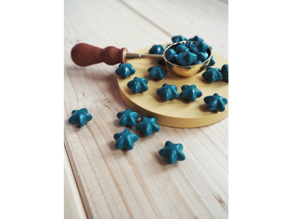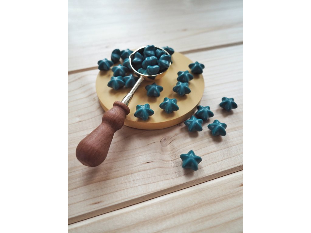 Pružný barevný vosk ve tvaru hvězdiček na výrobu pečetí. Díky pružnosti vosku se vám hotové pečetě nebudou lámat. Vosk rozpustíte pomocí lžičky na tavení vosku.
